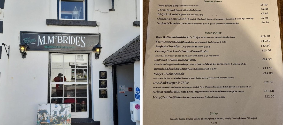 Discover Mary McBride's Bar, an authentic Irish pub located in Cushendun, Ballymena. Enjoy cozy village vibes, a stunning coastal view, and delicious dishes like seafood chowder, fish and chips, and steak and Guinness pie. Experience excellent service and unwind in our inviting beer garden. Join us for great craic today!